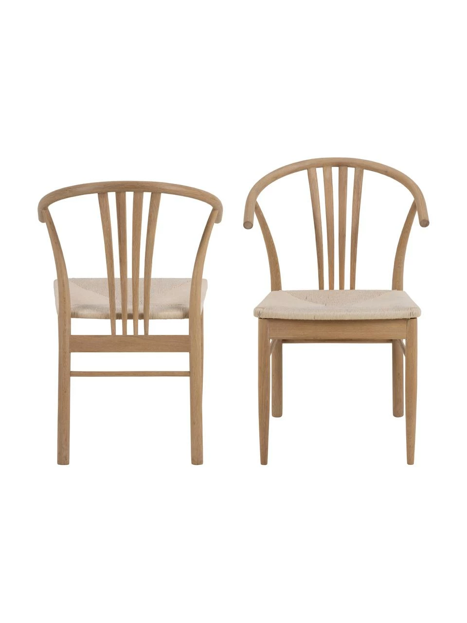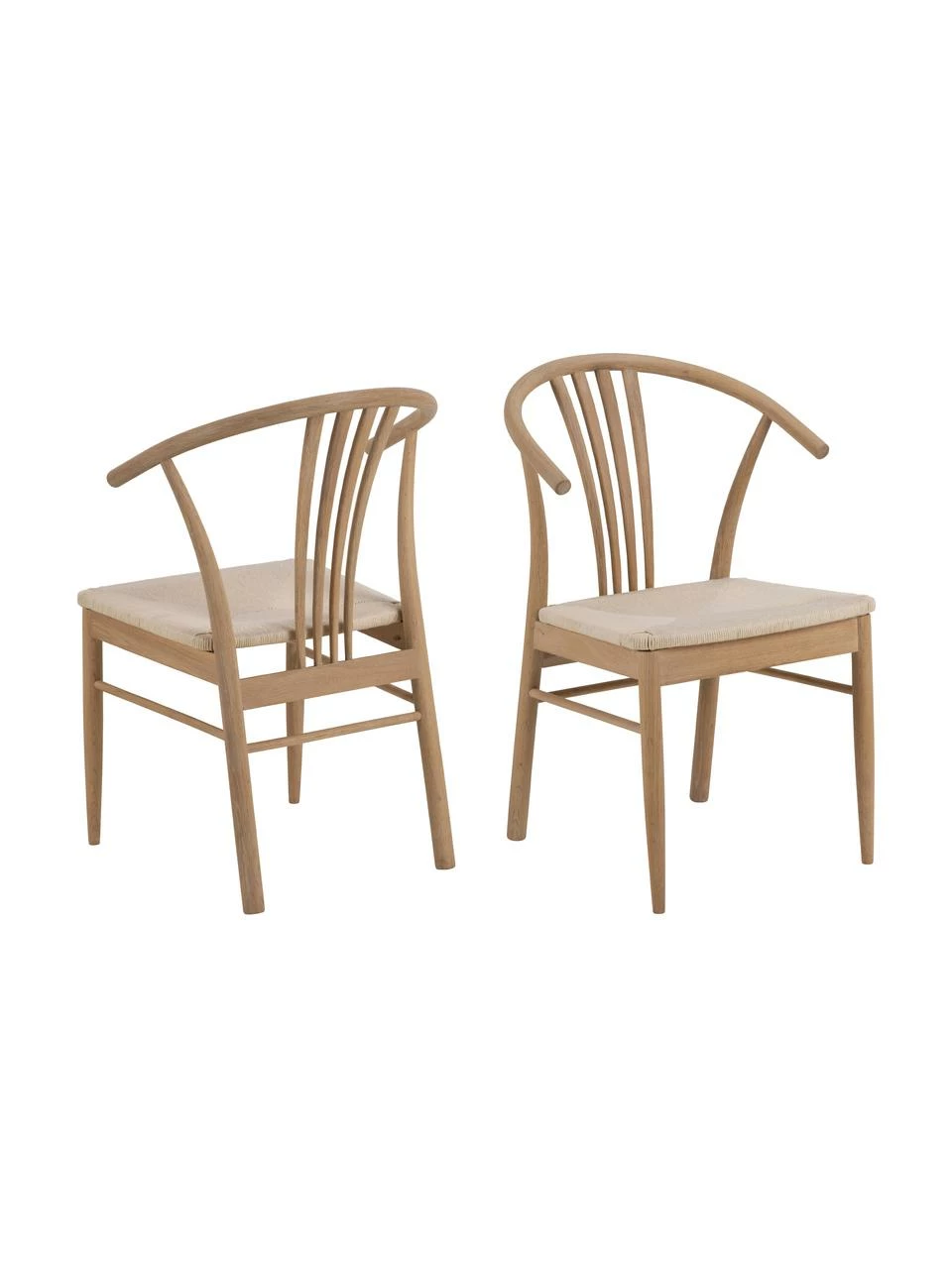 – Chaise à accoudoirs en bois avec tressage en jonc