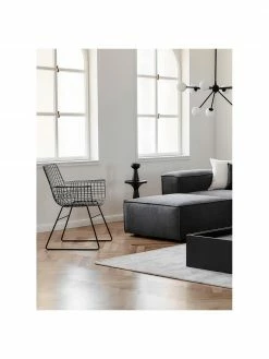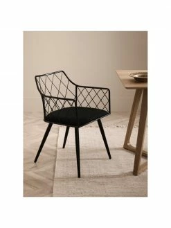 Chaise noire à accoudoirs avec coussin en bouclé Heidie, 2 pièces, larg. 53 x prof. 56 cm