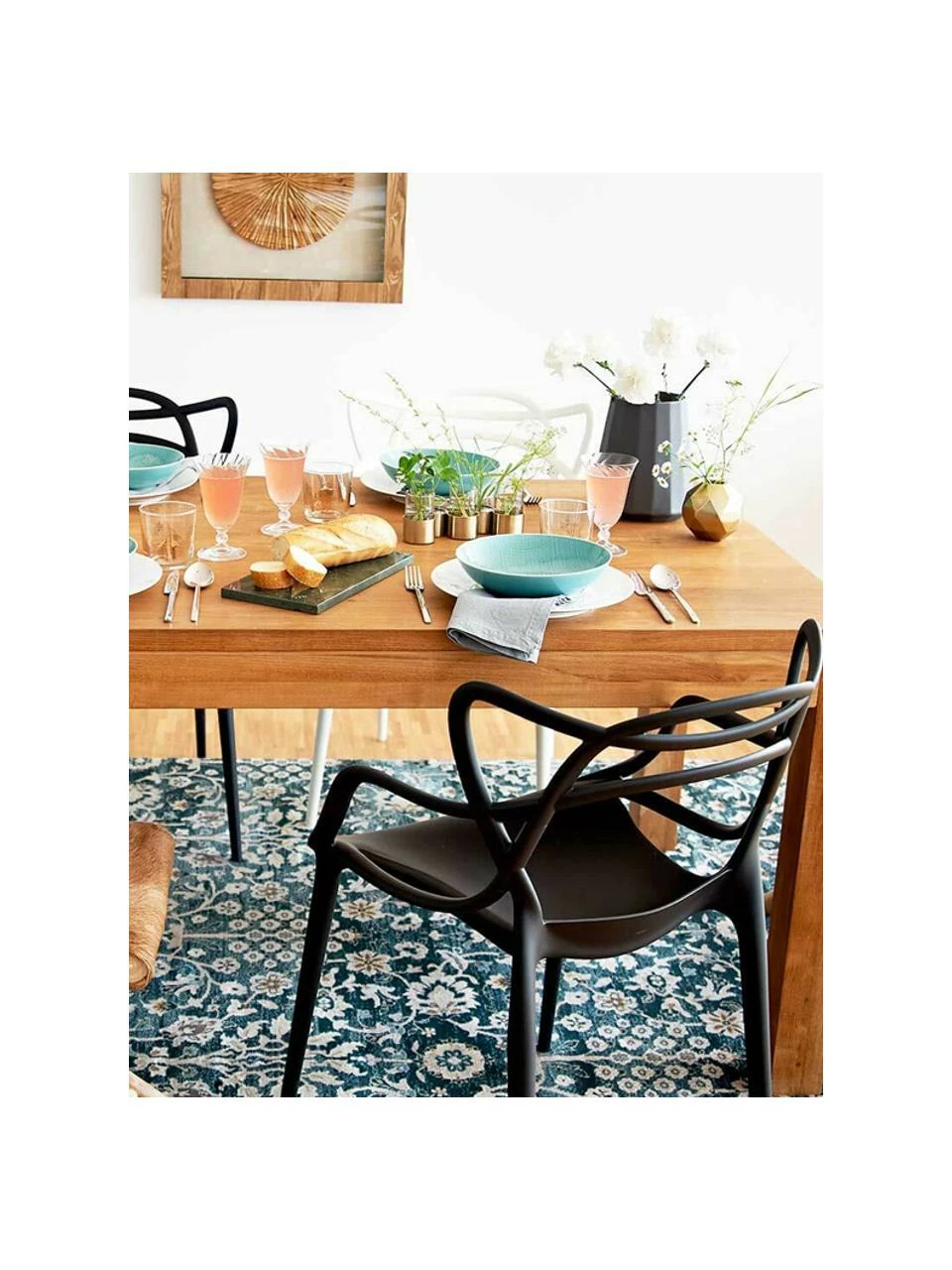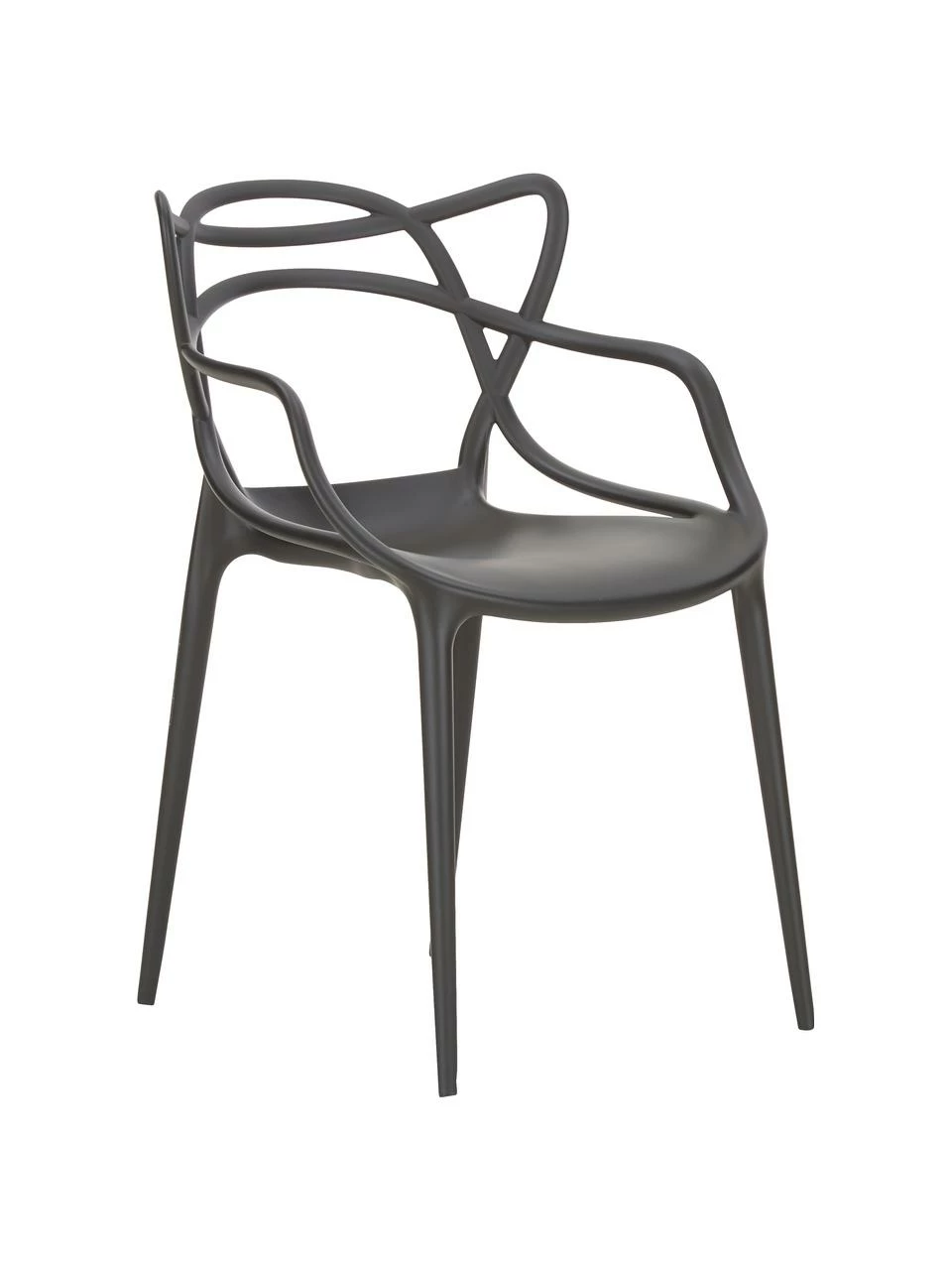 La chaise Masters de Kartell réunit les formes de trois classiques : la Série 7 d’Arne Jacobsen, la Tulip Armchair d’Eero Saarinen et la chaise Eiffel de Charles Eames ont été réinterprétées dans l’espace et dans le temps pour la Masters