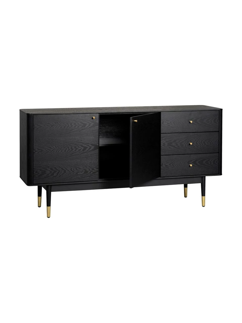 Pieds : bois de chêne, massif, laqué et revêtu de laiton