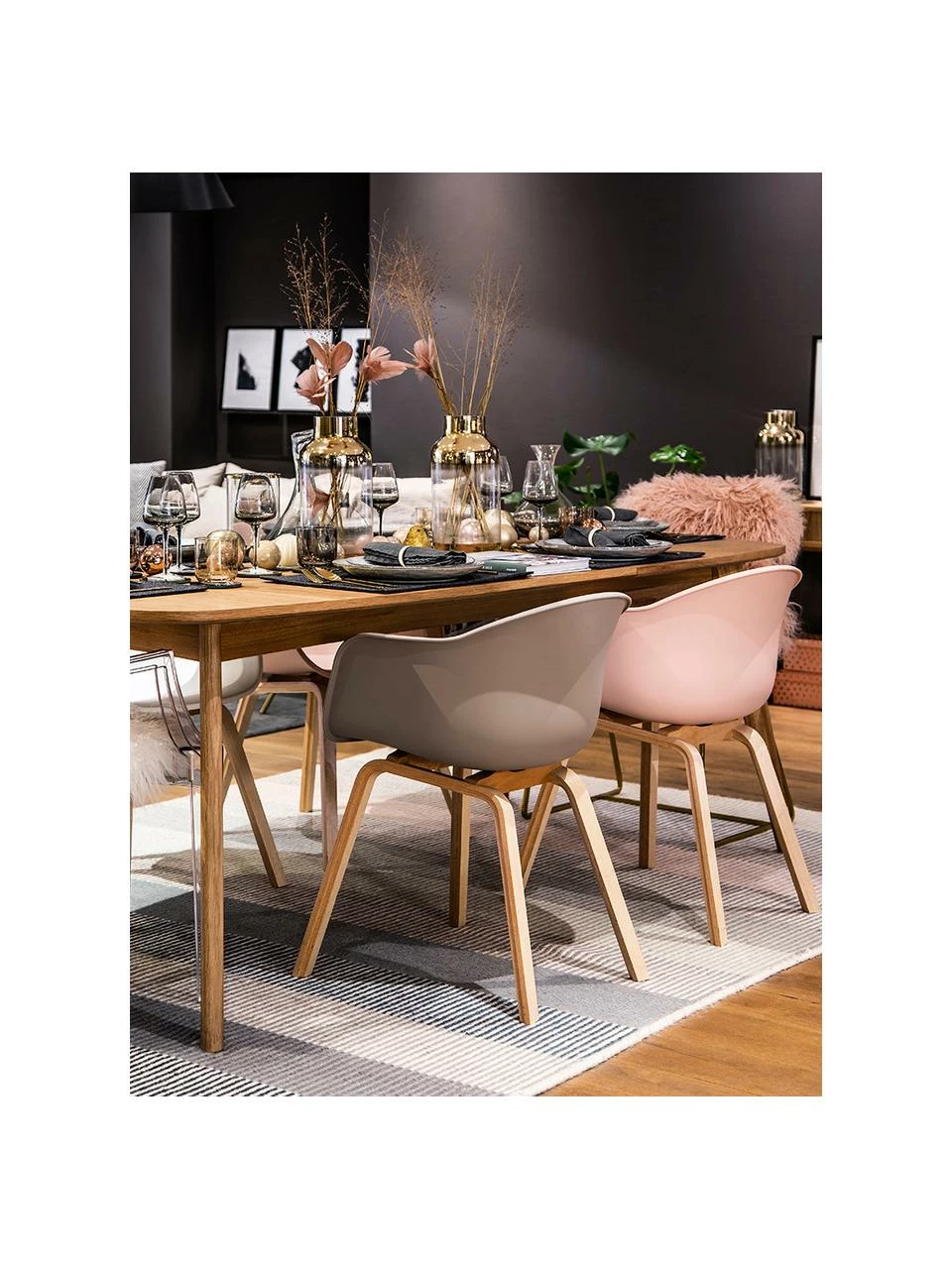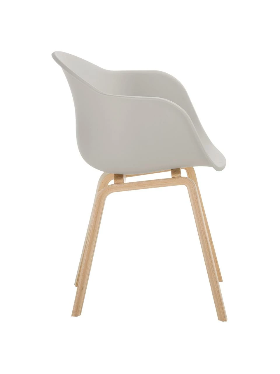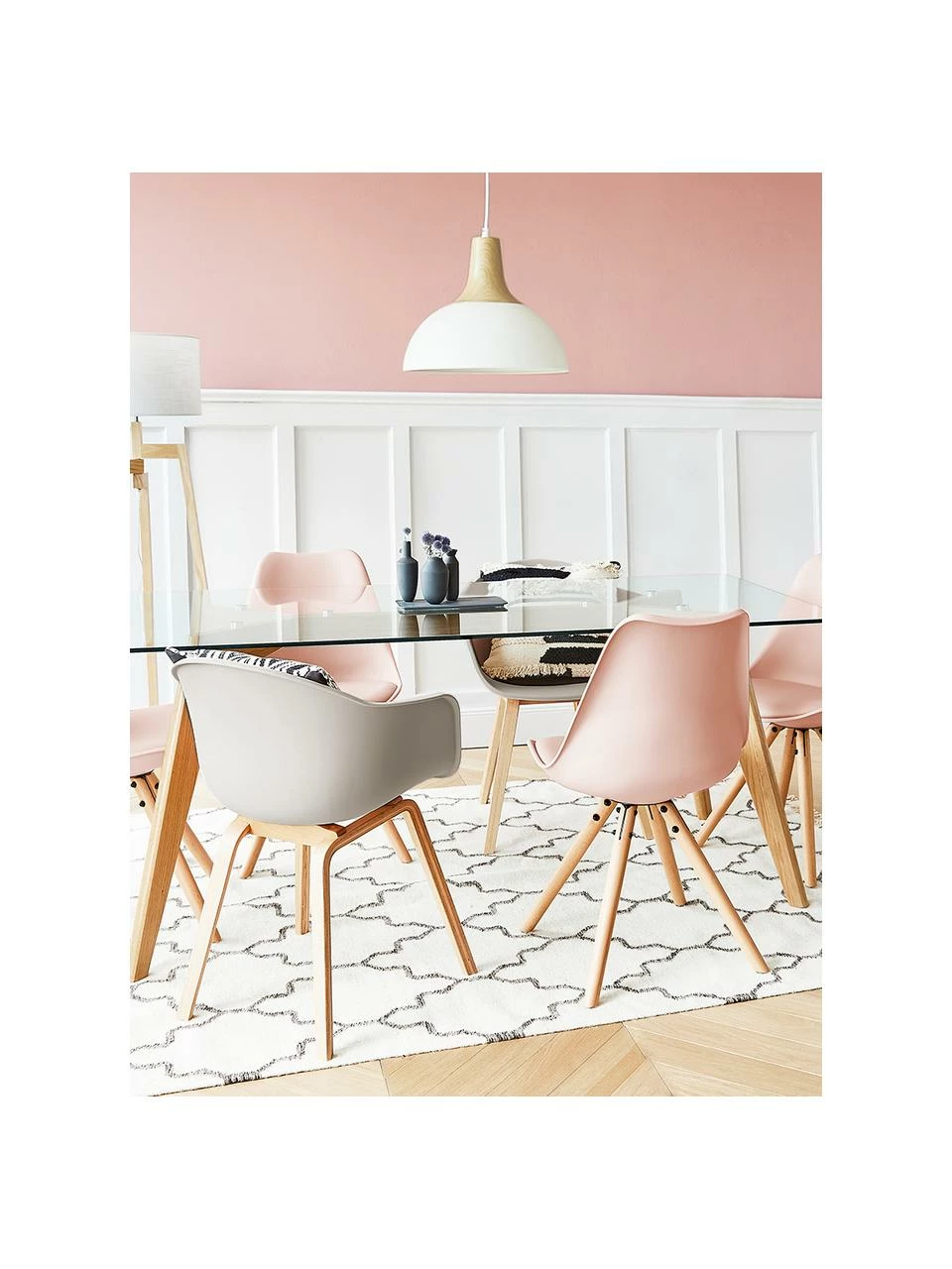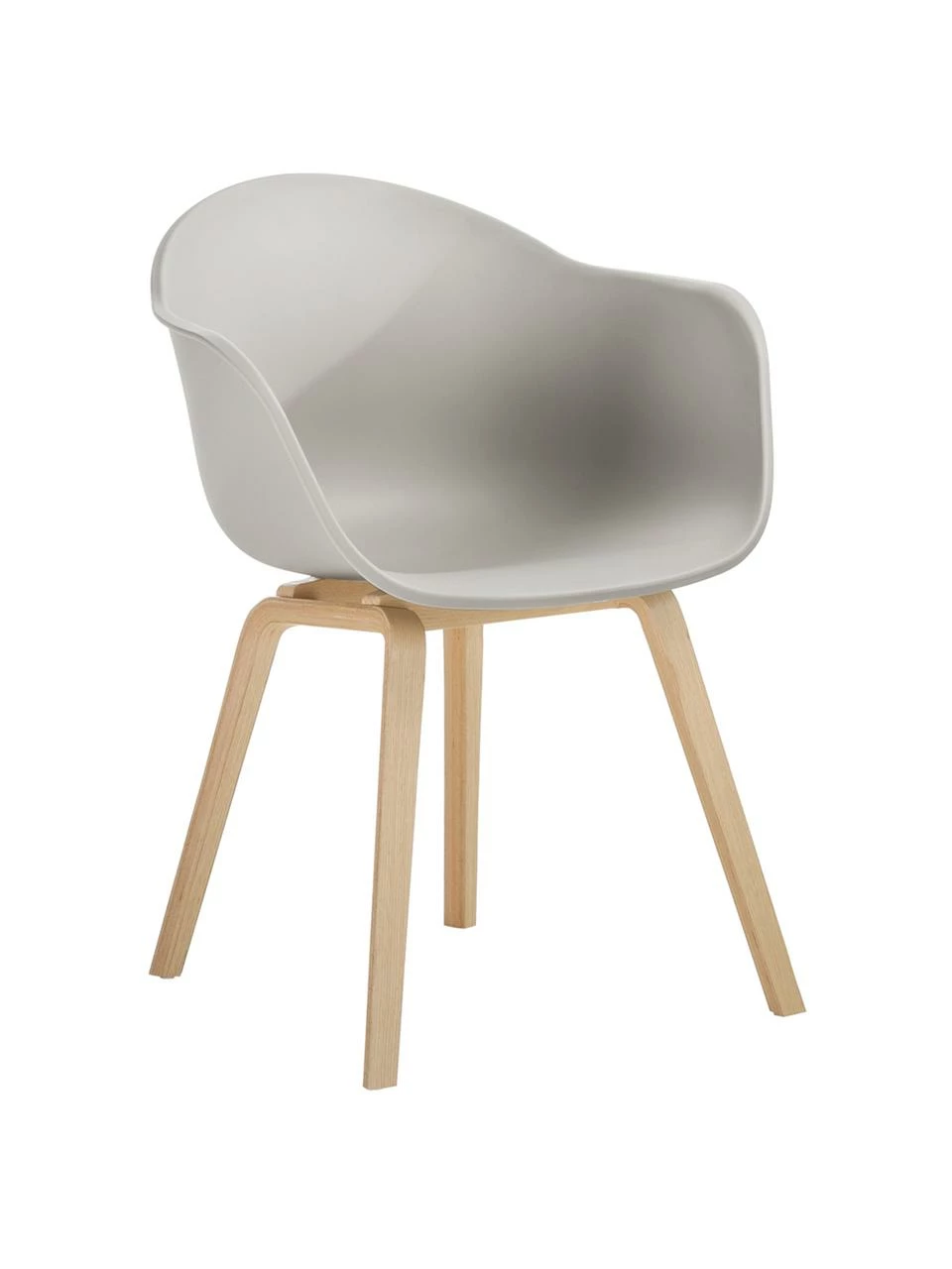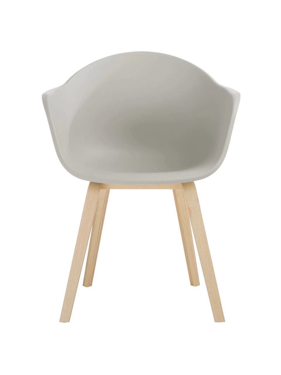 Notre star parmi les chaises à coque Claire. La chaise avec accoudoirs est disponible en différentes couleurs, avec des pieds en bois et en métal. Elle s’adapte à tous les styles