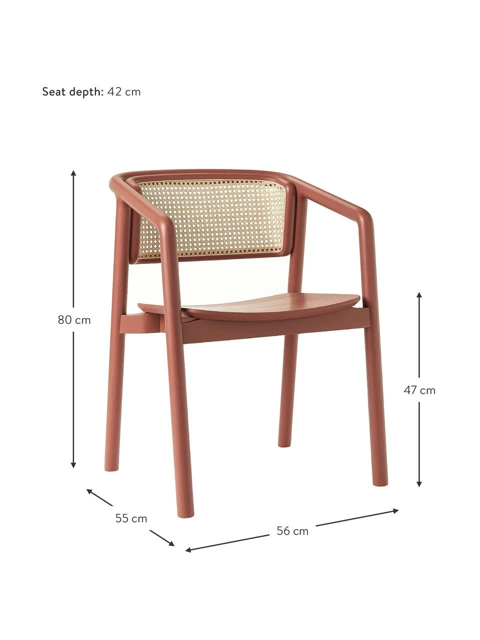 Dimensions de l’assise : larg. 47 cm, haut. 47 cm, prof. 42 cm