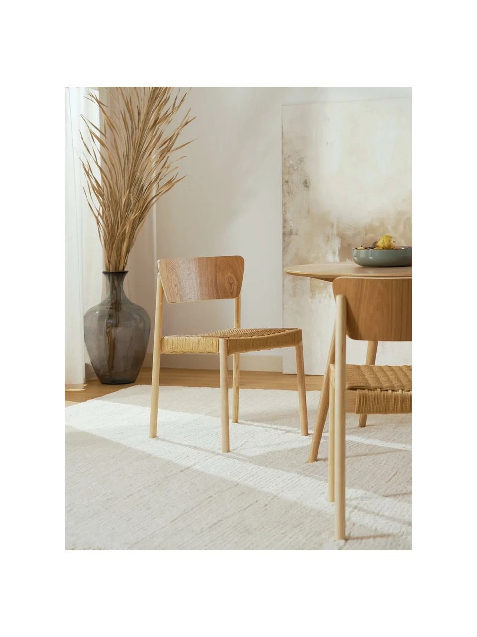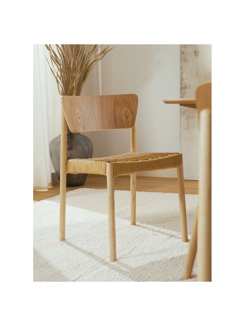 – 2 chaises en bois de hêtre massif et rotin