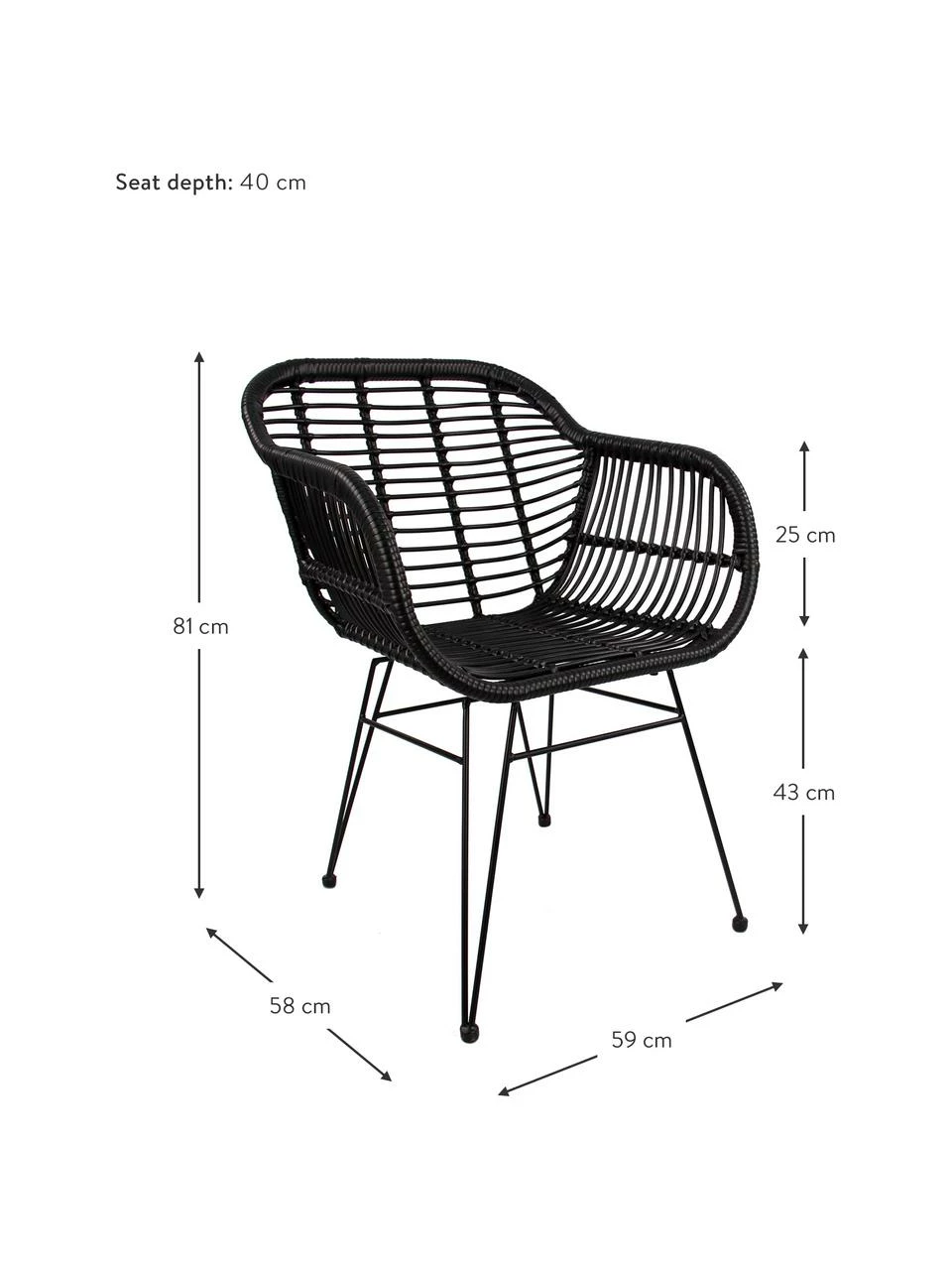 Westwing Collection Chaise polyrotin Costa, 2 pièces, larg. 59 x prof. 58 cm
