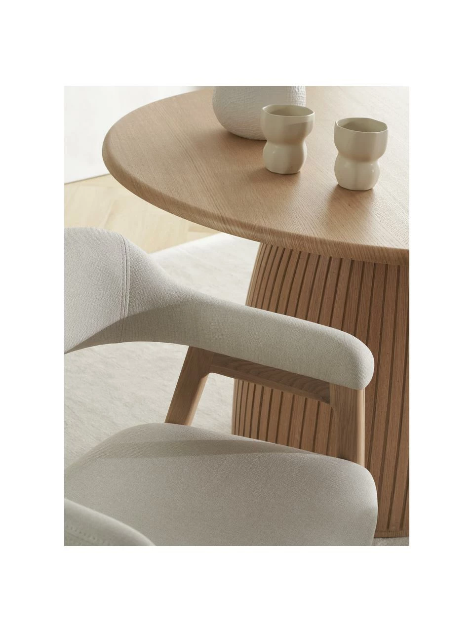 – Chaise à accoudoirs en bois avec rembourrage