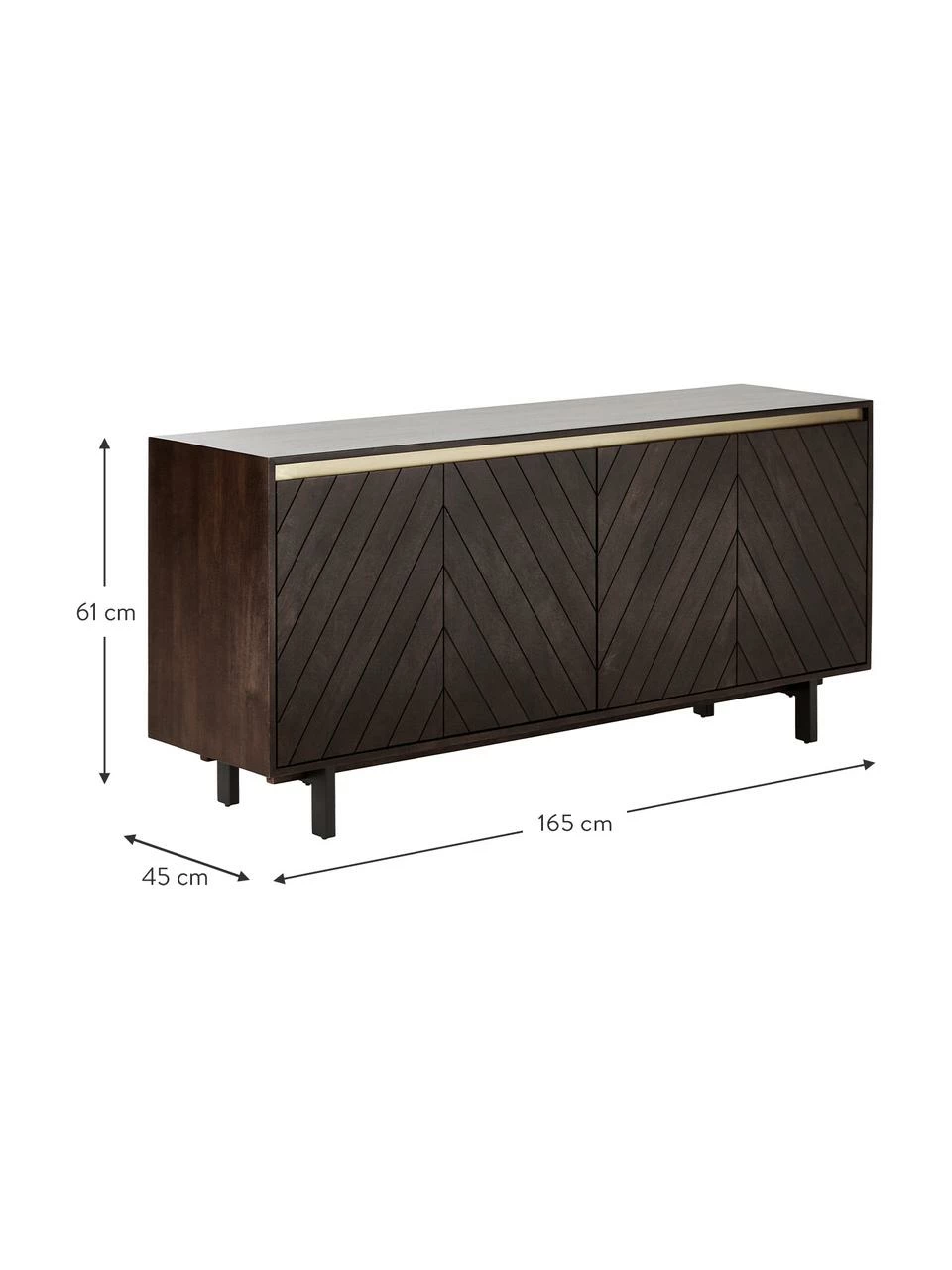 Larg. 165 cm, haut. 61 cm, prof. 45 cm