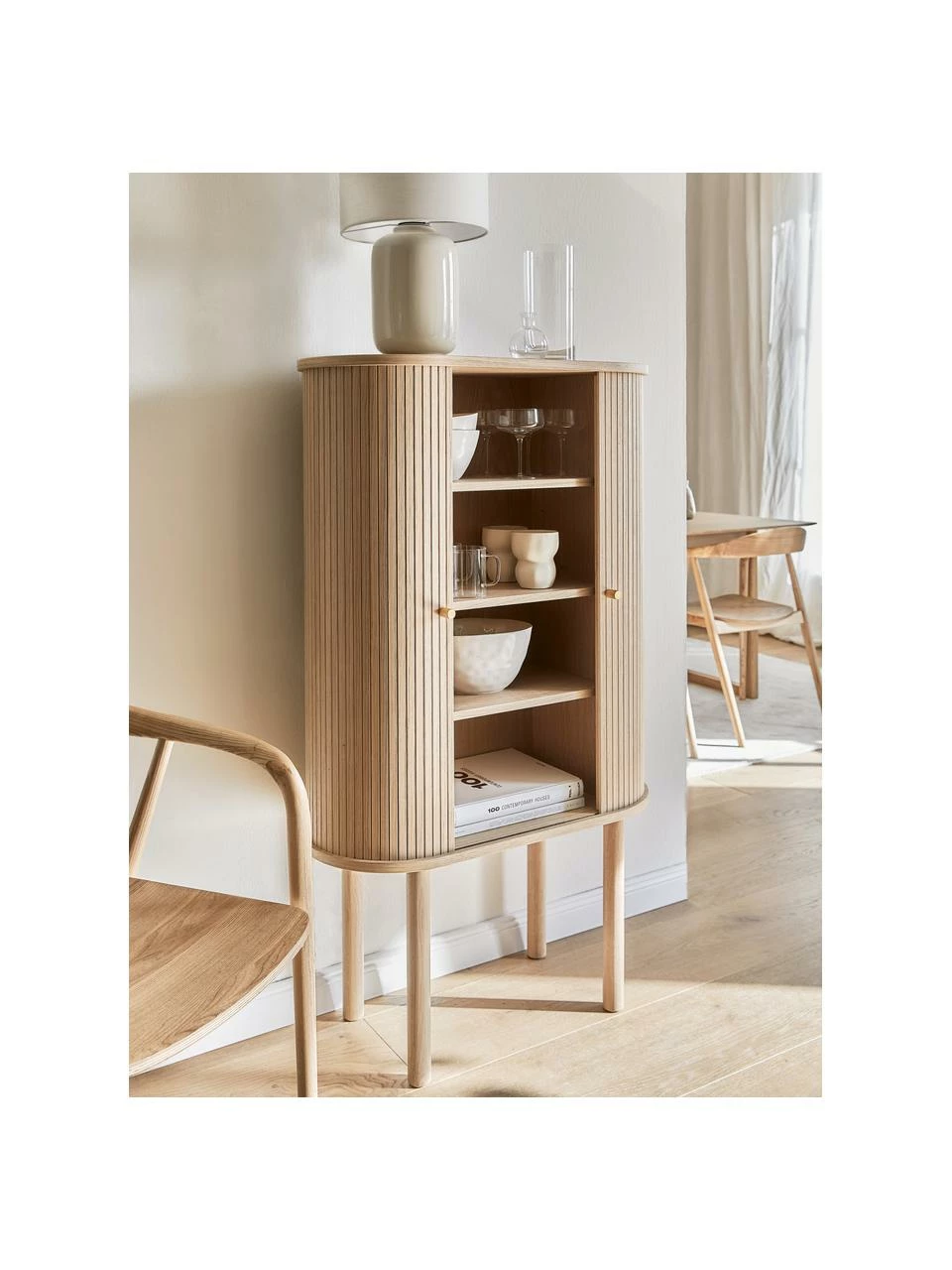 La structure cannelée décorative orne les façades des portes et fait de ce produit un véritable point fort du design qui attire tous les regards ! Les pieds filigranes confèrent en outre au design un aspect minimaliste et épuré
