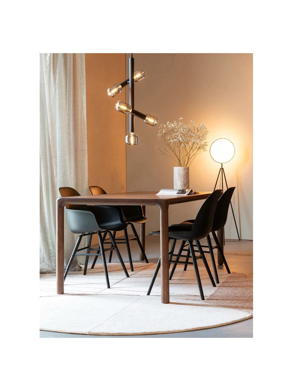Plateau : panneau en fibres de bois à densité moyenne, laqué Structure du plateau de table : bois de frêne massif avec logo Zuiver gravé Pieds : bois de frêne massif Finition de surface : Peinture PU couleur noyer